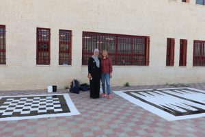 قدم طلاب المدرسة تفاعلا جميلا مع طلاب مدرسة الثانوية الشاملة أ، فرسموا لعبتين على أرضية المدرسة -اللعبة الأولى هي لعبة الطاولة والثانية لعبة الداما-.