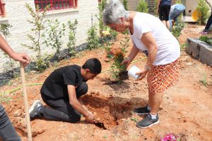 في هذا اللقاء زرعنا وضعت اللمسات الختامية للحديقة التي استندت من قبل جمعية زراعة الأراضي الإسرائيلية تعاونا مع شبكة عمال.