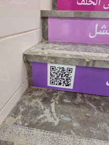 تعزيزا للصحة والرياضة قامت المدرسة بإعداد ملصقات بعبارات تشجيعية وتحفيزية مع رمز شريطيّ يحتوي على العديد من الفعاليات ومواقع الانترنت التي من شأنها مساعدة الطلاب علقت على درج المدرسة.