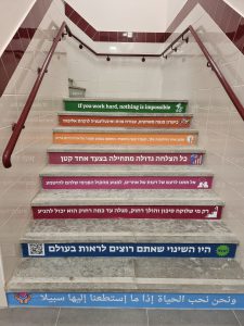 התקנו בבית הספר לכבוד שבוע הבריאות, מדרגות מעודדות בריאות ומוטיבציה בבית הספר ב3 שפות.